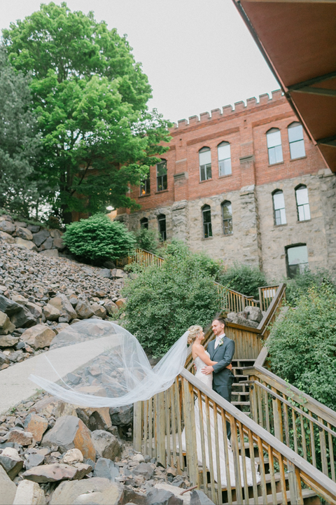 During warmer months, Chateau Rive offers a beautiful outdoor meadow for your ceremony. Ensconced between vintage brick on the east side and natural rock formation on the right. The river to the south, and a bridge connecting to a four-story staircase on the north provide plenty of photo opportunities to commemorate your special day.